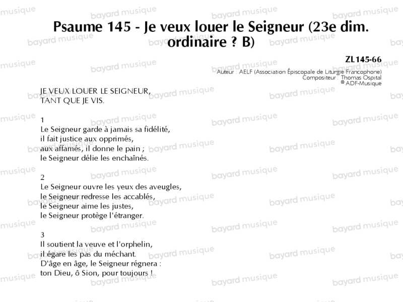 78. Psaume 145 "Je veux louer le Seigneur" (23e dimanche du temps ordinaire, année B)