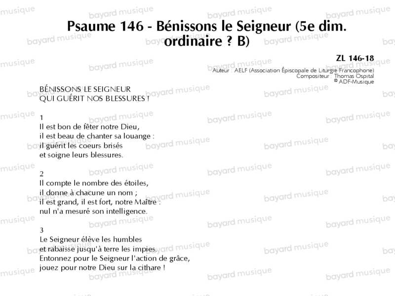 19. Psaume 146 "Bénissons le Seigneur" (5e dimanche du temps ordinaire, année B)