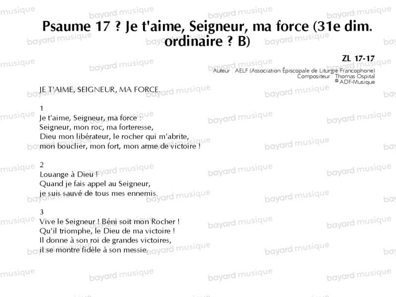 90. Psaume 17 "Je t'aime, Seigneur, ma force" (31e dimanche du temps ordinaire, année B)