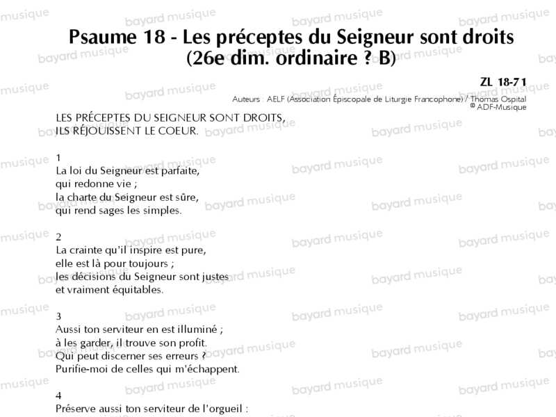 83. Psaume 18 "Les préceptes du Seigneur sont droits" (26e dimanche du temps ordinaire, année B)