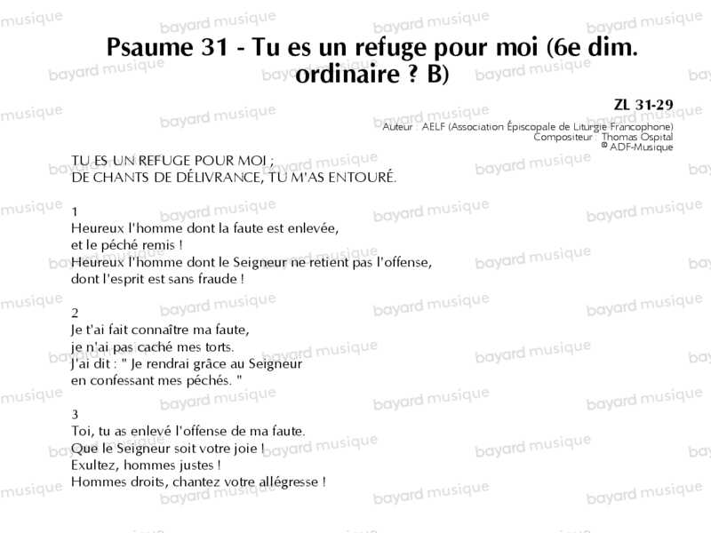 Psaume 31 "Tu es un refuge pour moi" (6e dimanche du temps ordinaire, année B)