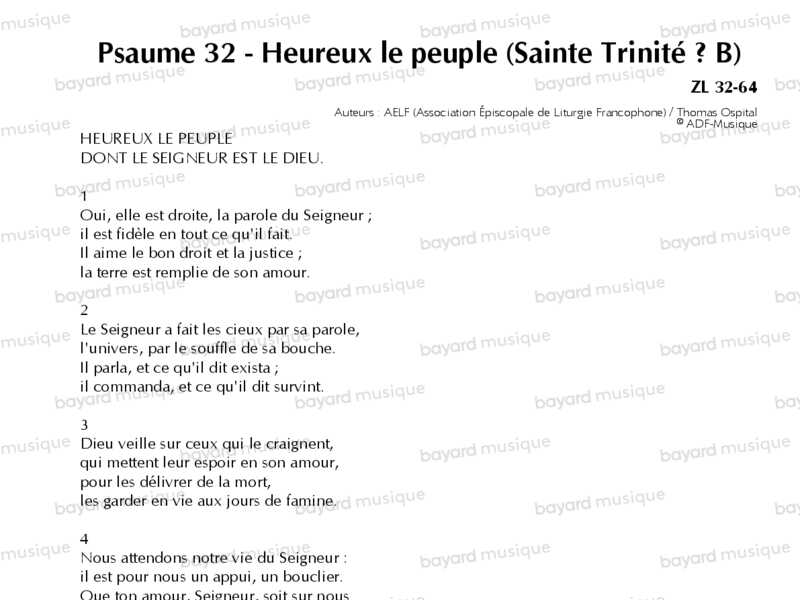 86. Psaume 32 "Que ton amour, Seigneur, soit sur nous" (2e dimanche de Carême, année A et 29e dimanche du temps ordinaire, année B)