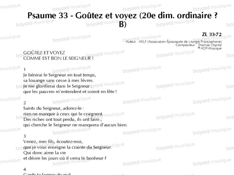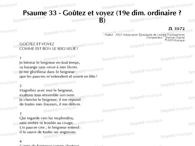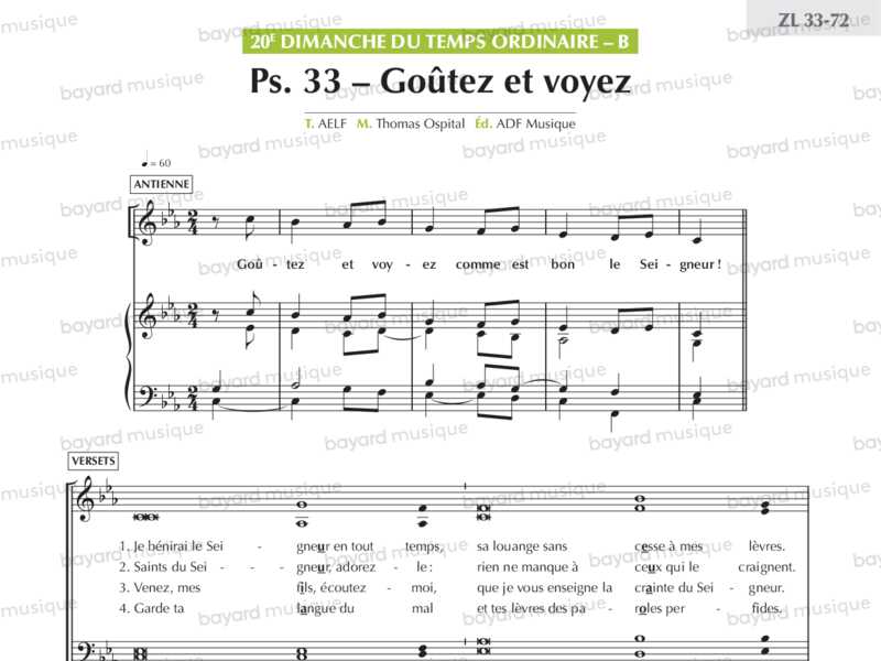 75. Psaume 33 "Goûtez et voyez" (20e dimanche du temps ordinaire, année B)
