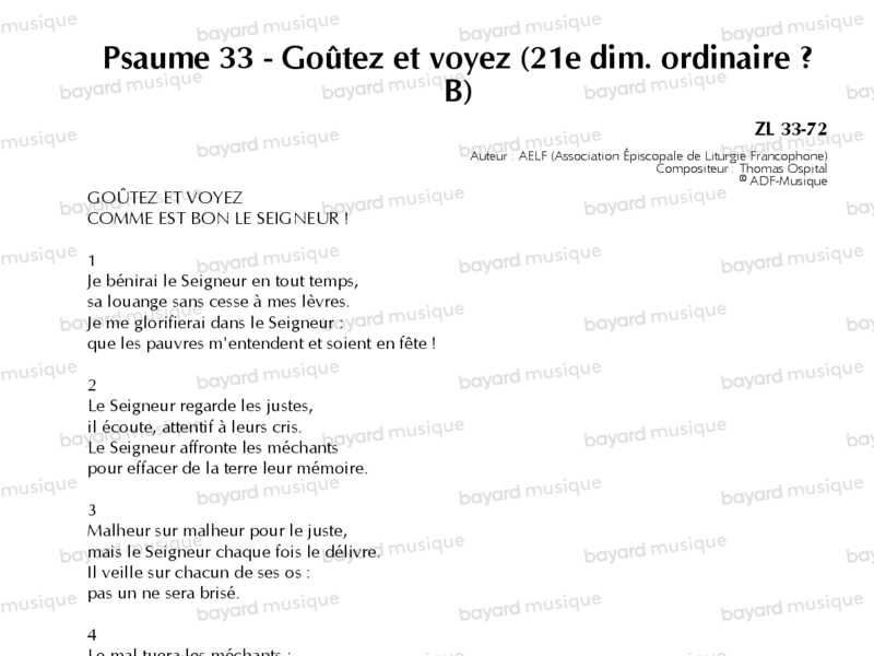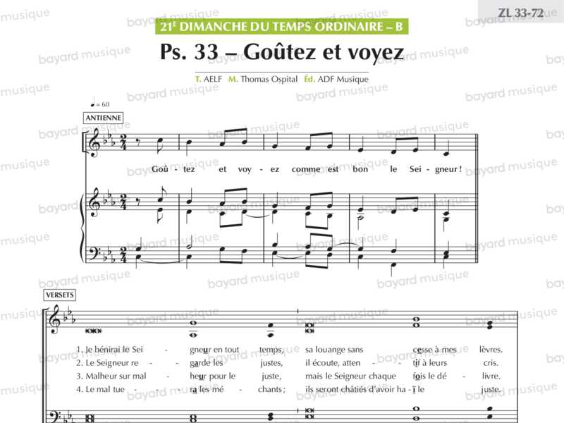 76. Psaume 33 "Goûtez et voyez" (21e dimanche du temps ordinaire, année B)
