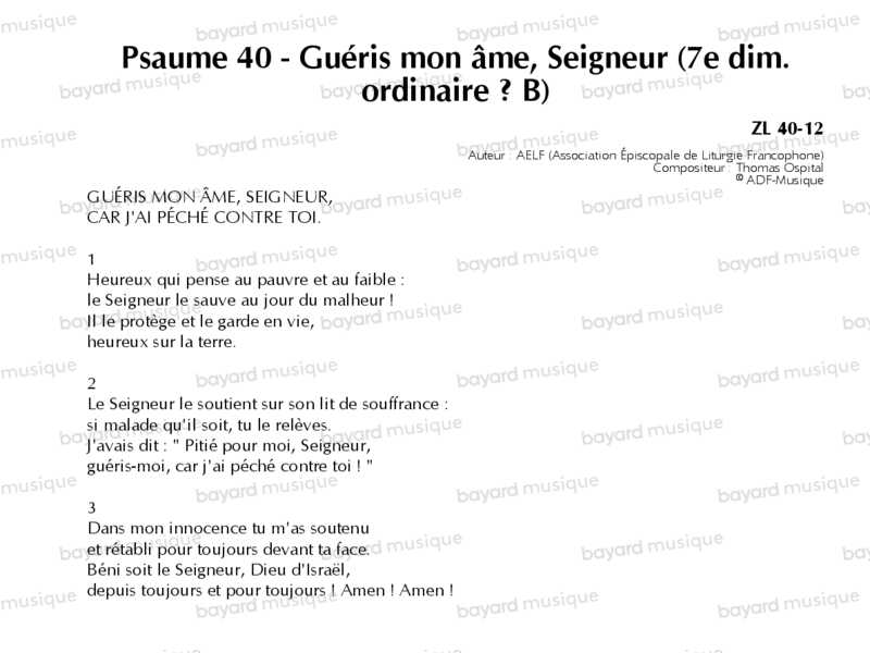 21. Psaume 40 "Guéris mon âme, Seigneur" (7e dimanche du temps ordinaire, année B)