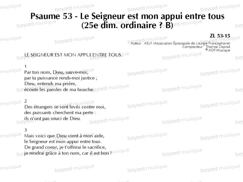 Psaume 53 "Le Seigneur est mon appui entre tous" (25e dimanche du temps ordinaire, année B)