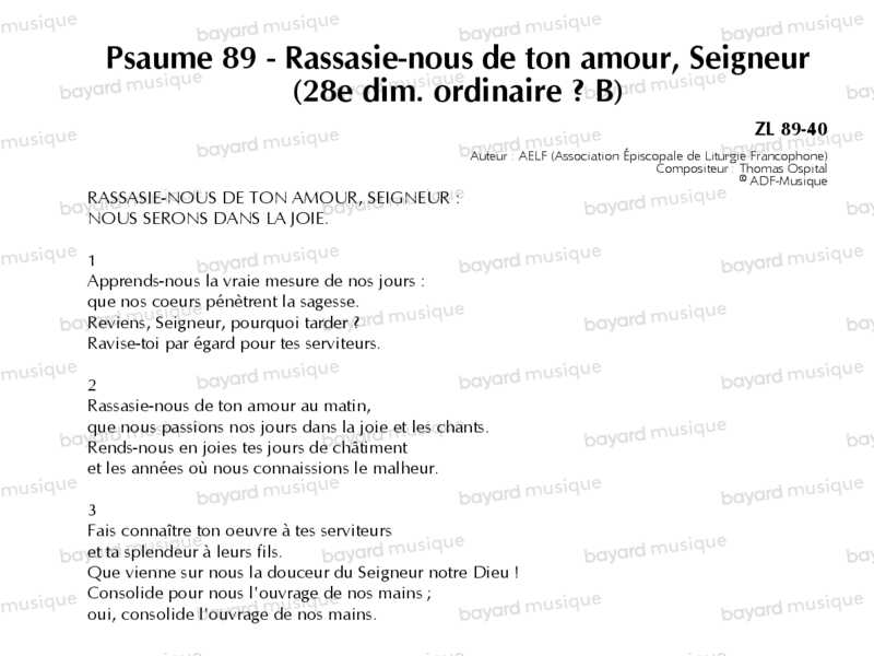 85. Psaume 89 "Rassasie-nous de ton amour, Seigneur" (28e dimanche du temps ordinaire, année B)
