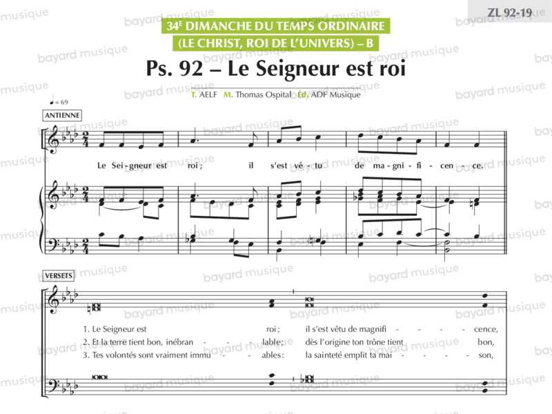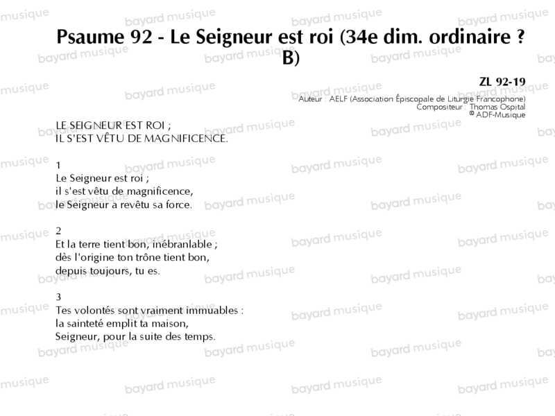 Psaume 92 "Le Seigneur est roi" (34e dimanche du temps ordinaire (Le Christ, Roi de l'univers), année B)