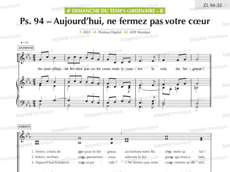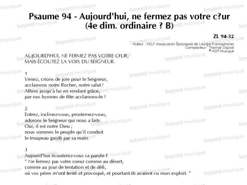 17. Psaume 94 "Aujourd'hui, ne fermez pas votre cœur" (4e dimanche du temps ordinaire, année B)