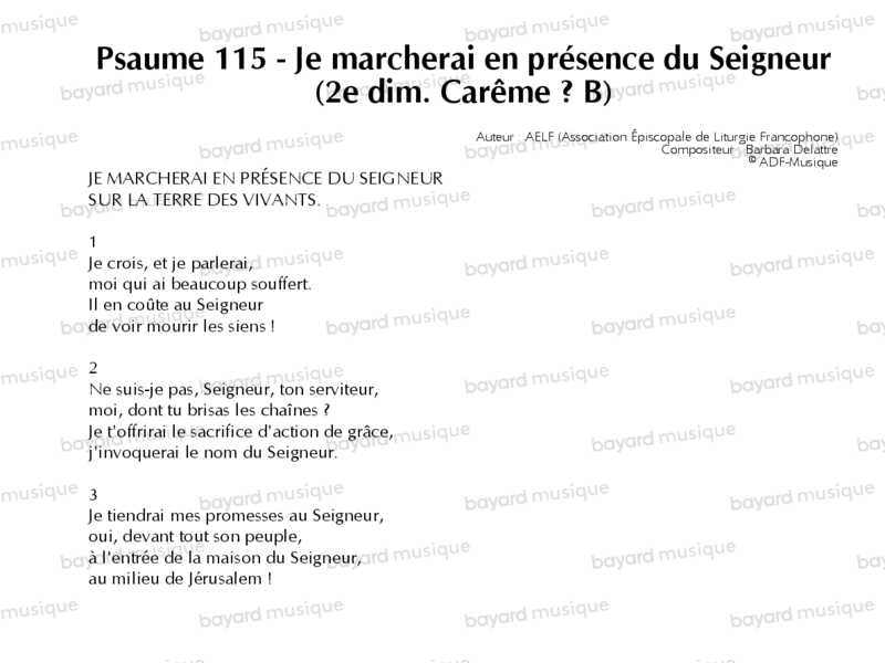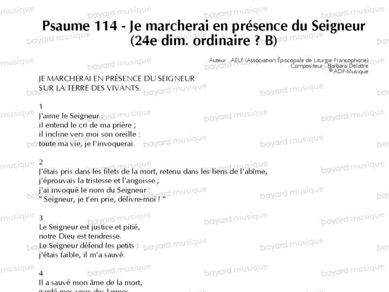 75. Psaume 114 "Je marcherai en présence du Seigneur" (24e dimanche du temps ordinaire, année B)
