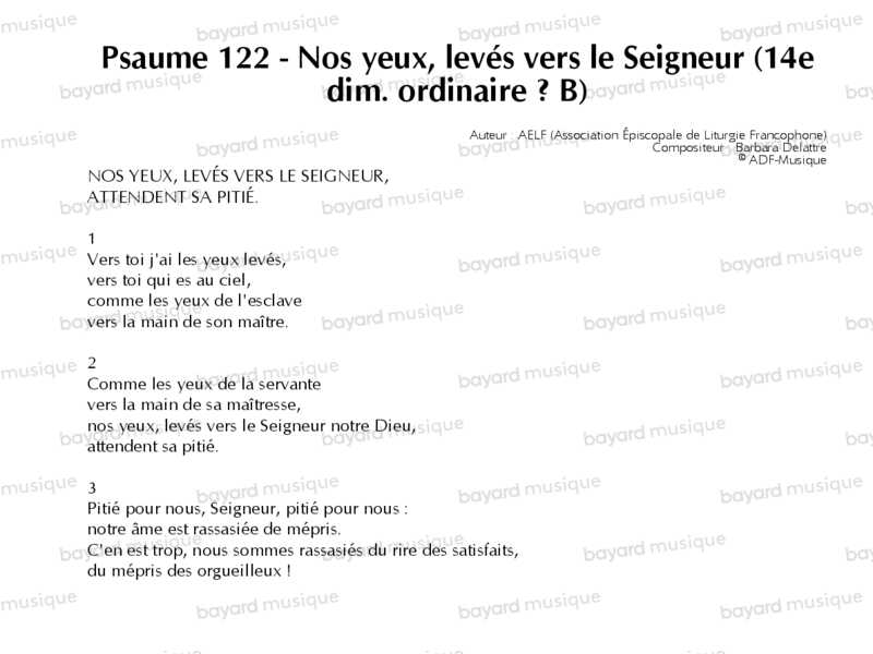 71. Psaume 14 "Seigneur, qui séjournera sous ta tente ?" (22e dimanche du temps ordinaire, année B et 16e dimanche du temps ordinaire, année C)