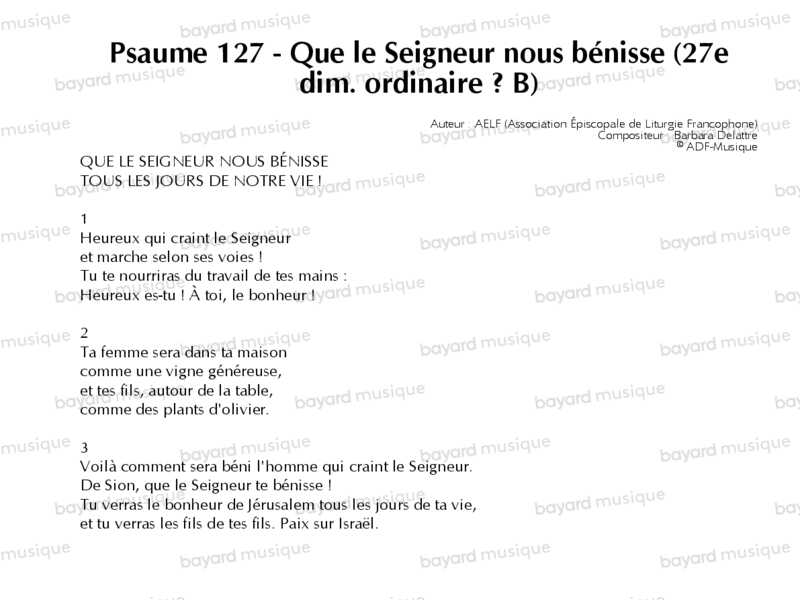 78. Psaume 127 "Que le Seigneur nous bénisse" (27e dimanche du temps ordinaire, année B)