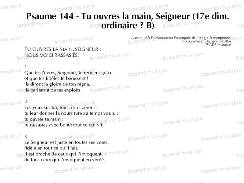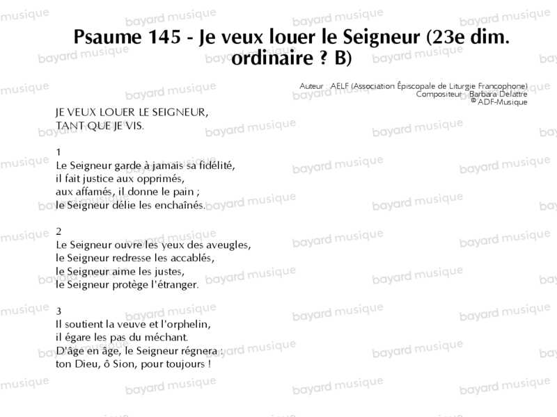 72. Psaume 145 "Je veux louer le Seigneur" (23e dimanche du temps ordinaire, année B)