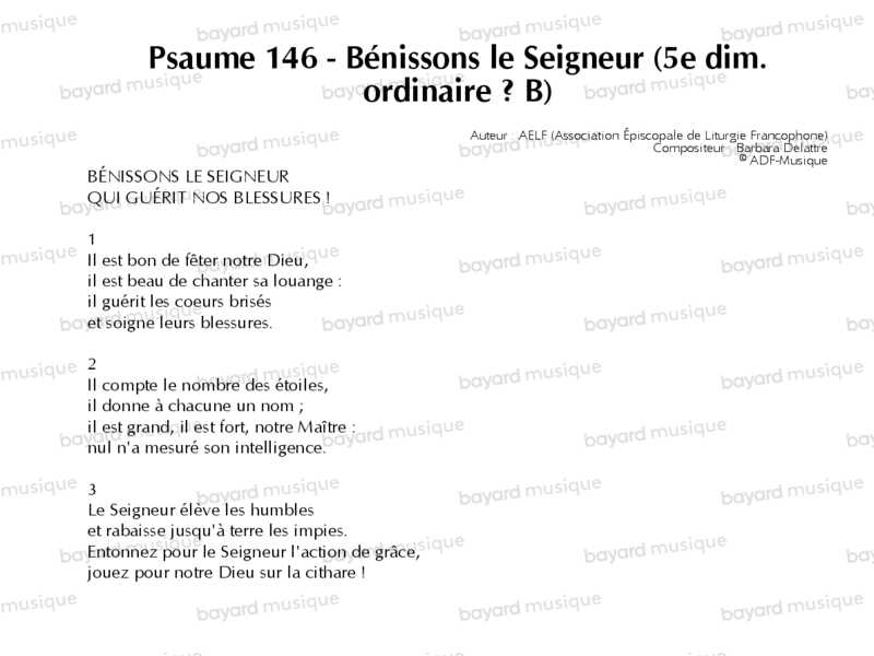 19. Psaume 146 "Bénissons le Seigneur" (5e dimanche du temps ordinaire, année B)