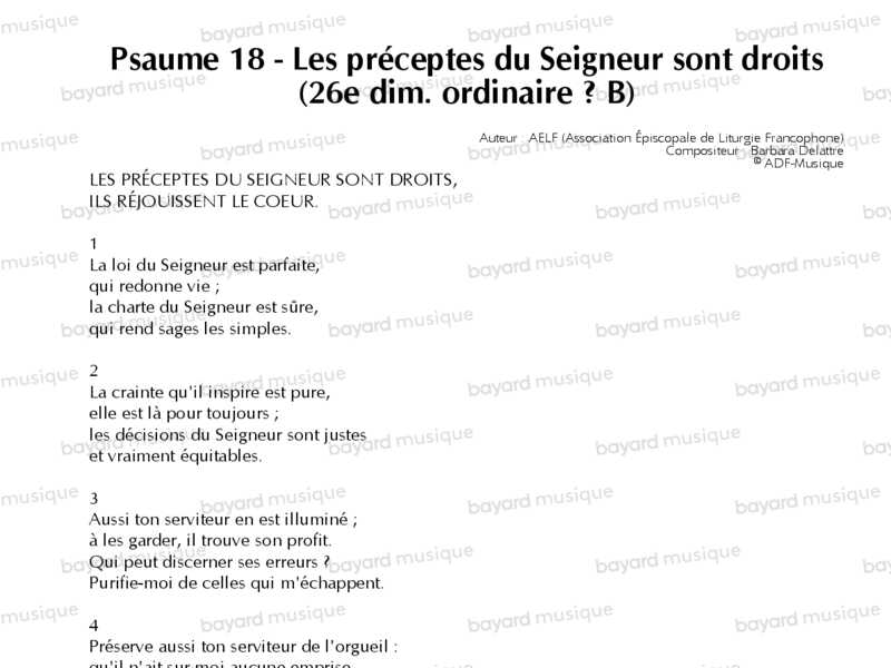 77. Psaume 18 "Les préceptes du Seigneur sont droits" (26e dimanche du temps ordinaire, année B)