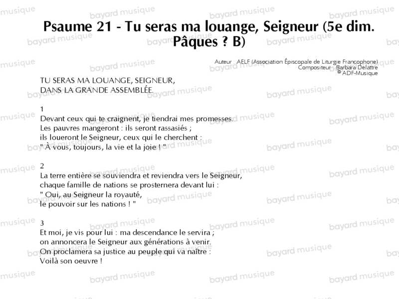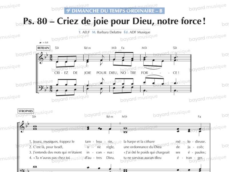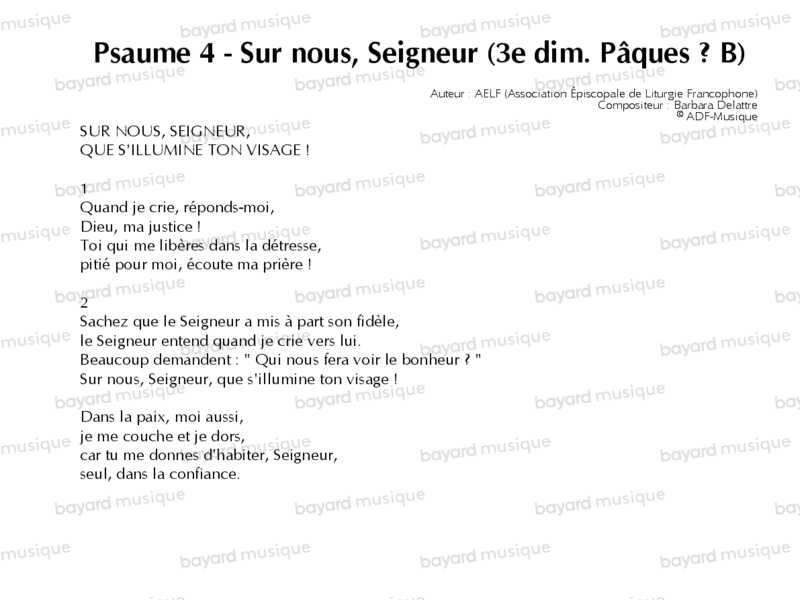 Les psaumes pour les dimanches et fêtes de l’année B mis en musique par Barbara Delattre, avec la participation de Sœur Agathe, pour un renouvellement du chant des psaumes en paroisse.