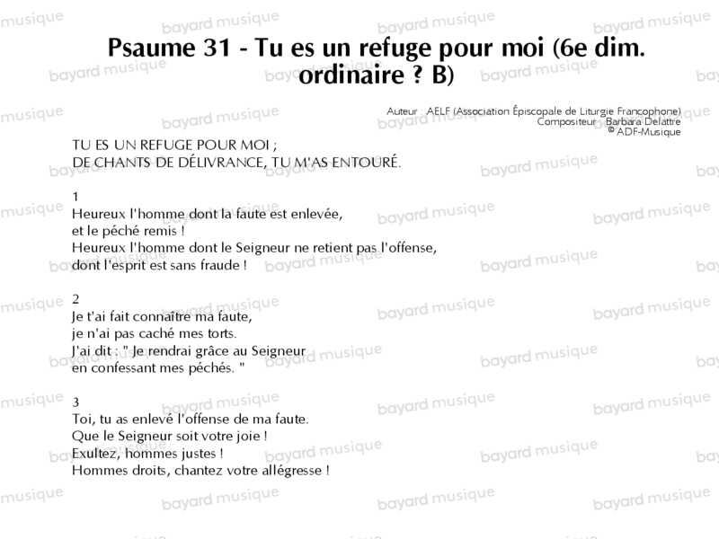 Psaume 31 "Tu es un refuge pour moi" (6e dimanche du temps ordinaire, année B)