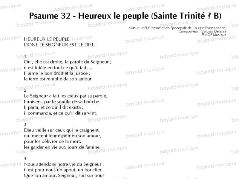 Psaume 32 "Que ton amour, Seigneur, soit sur nous" (2e dimanche de Carême, année A et 29e dimanche du temps ordinaire, année B)