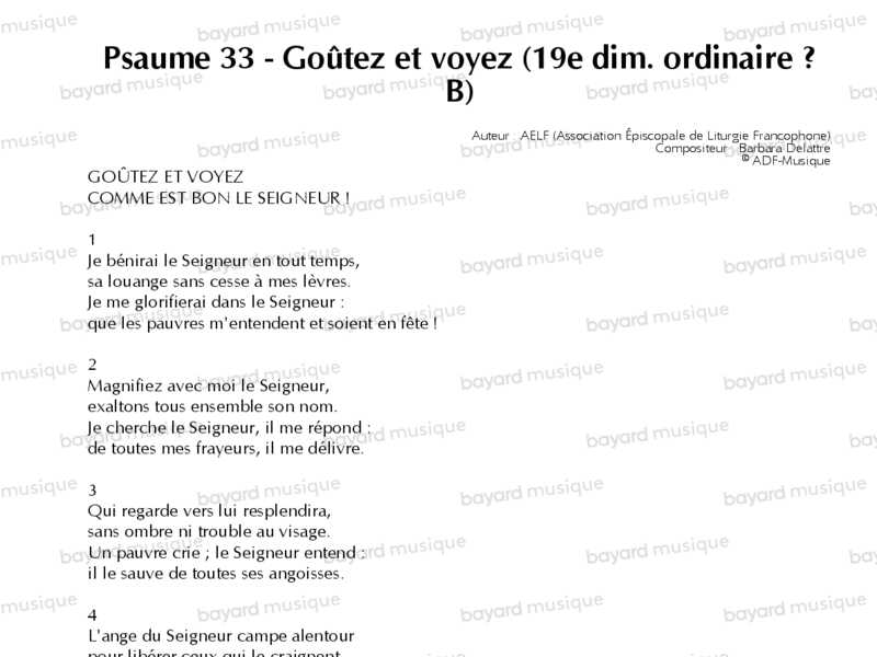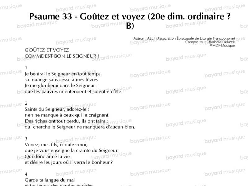 69. Psaume 33 "Goûtez et voyez" (20e dimanche du temps ordinaire, année B)