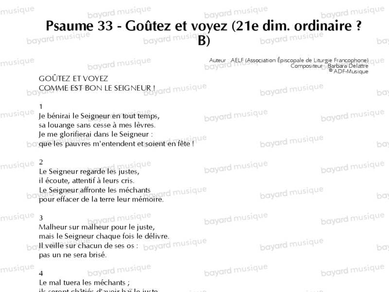 70. Psaume 33 "Goûtez et voyez" (21e dimanche du temps ordinaire, année B)