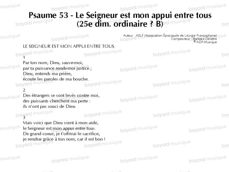 Psaume 53 "Le Seigneur est mon appui entre tous" (25e dimanche du temps ordinaire, année B)