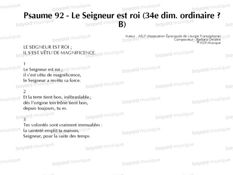 Psaume 92 "Le Seigneur est roi" (34e dimanche du temps ordinaire (Le Christ, Roi de l'univers), année B)