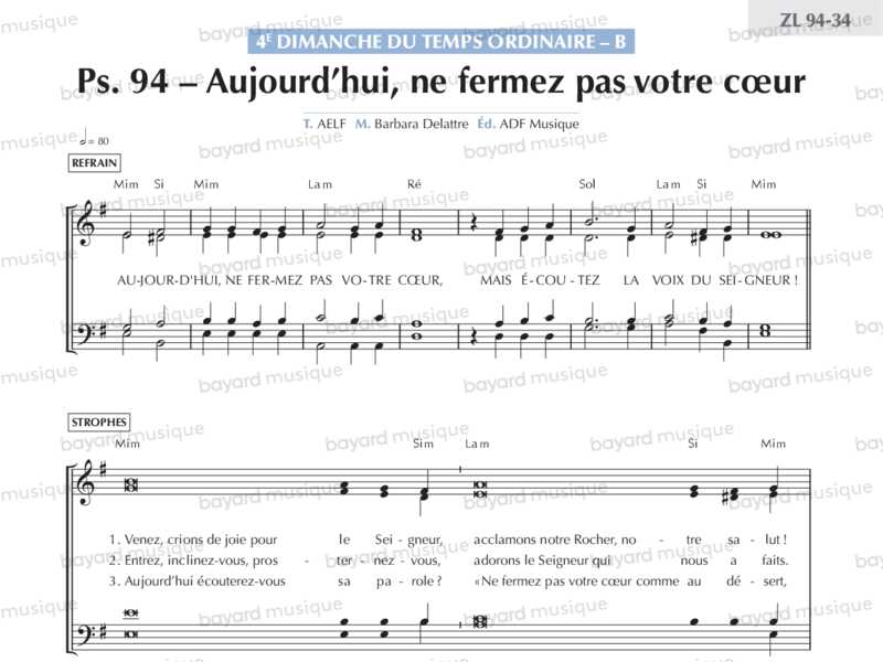 17. Psaume 94 "Aujourd'hui, ne fermez pas votre cœur" (4e dimanche du temps ordinaire, année B)