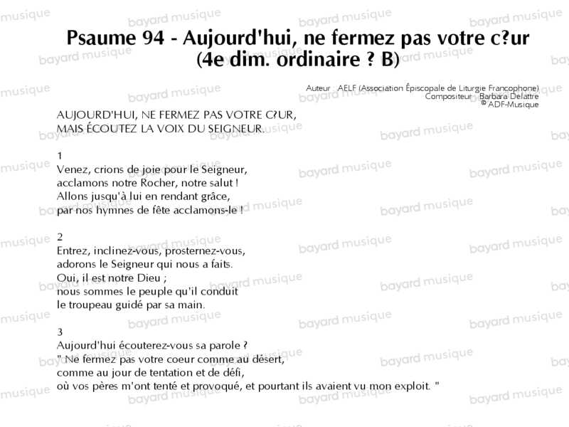 Psaume 94 "Aujourd'hui, ne fermez pas votre cœur" (4e dimanche du temps ordinaire, année B)