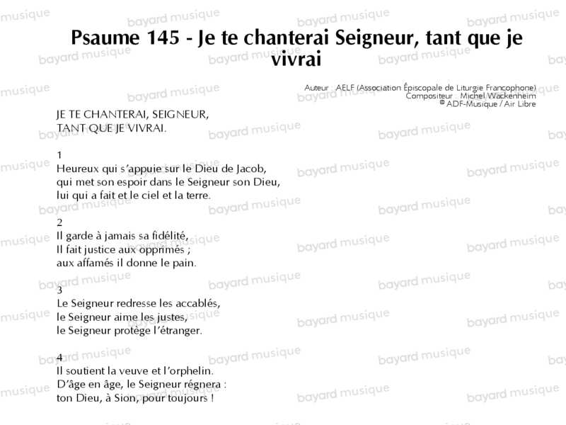 16. Psaume 145 - Je te chanterai Seigneur, tant que je vivrai
