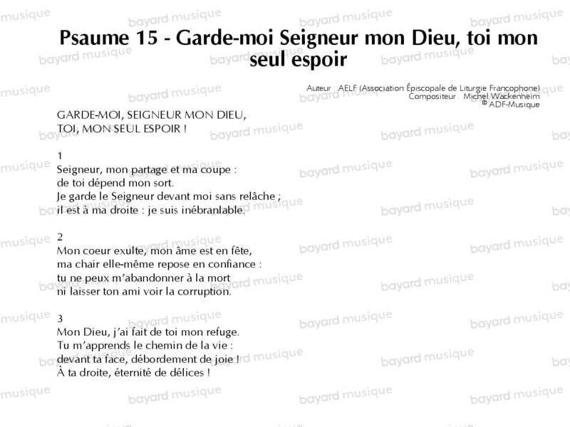 17. Psaume 15 - Garde-moi Seigneur mon Dieu, toi mon seul espoir