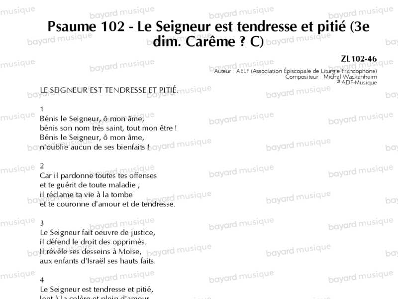 15. Psaume 102 - Le Seigneur est tendresse et pitié (3e dim. Carême – C)