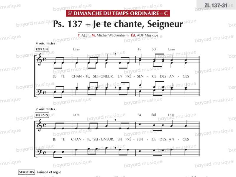 11. Psaume 137 - Je te chante, Seigneur (5e dim. ordinaire – C)