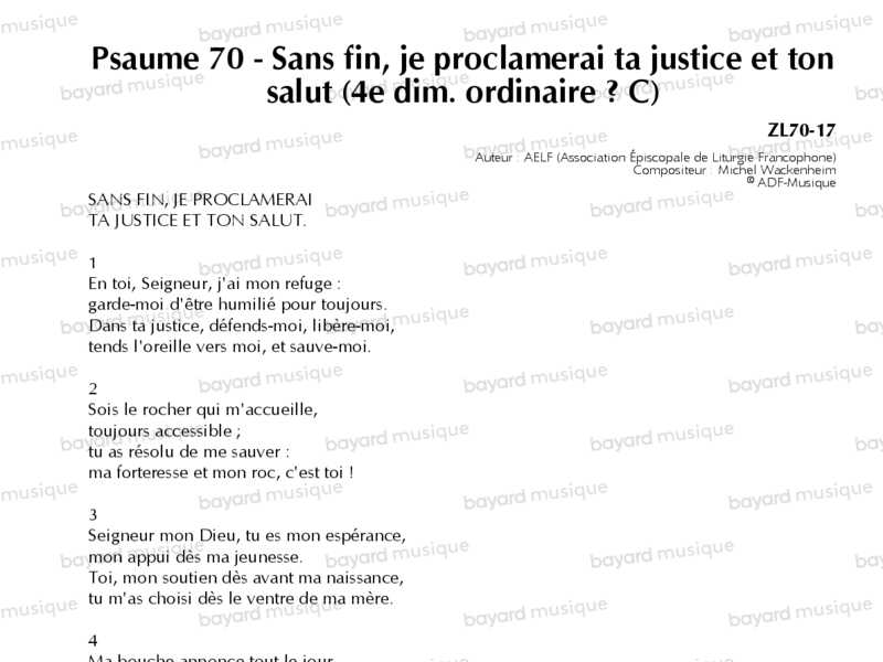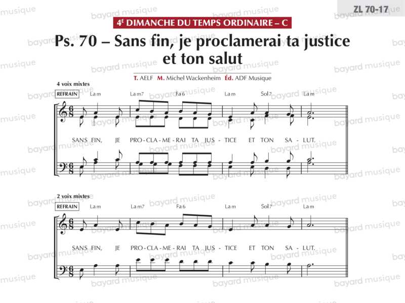 Psaume 70 - Sans fin, je proclamerai ta justice et ton salut (4e dim. ordinaire – C)