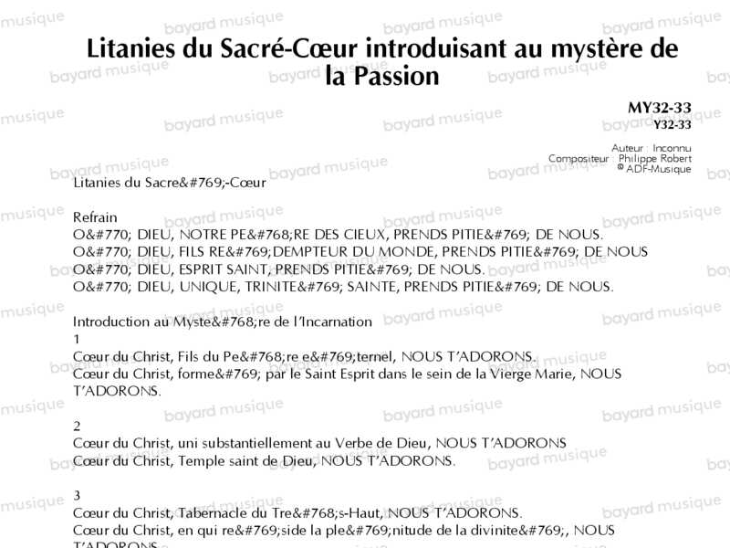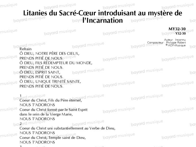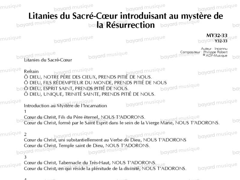 Partitions des Litanies du Sacré-Cœur pour Introductions au Mystères de l’Incarnation, de la Passion, de la Résurrection et Finale des Litanies du Sacré-Cœur.