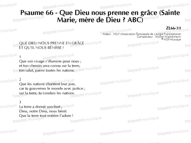 Psaume 66 - Que Dieu nous prenne en grâce (Sainte Marie, mère de Dieu – ABC)