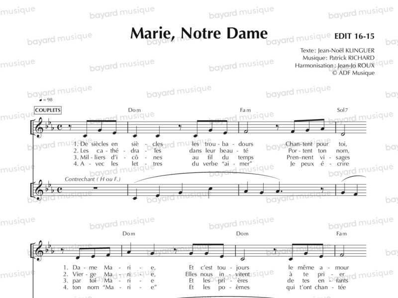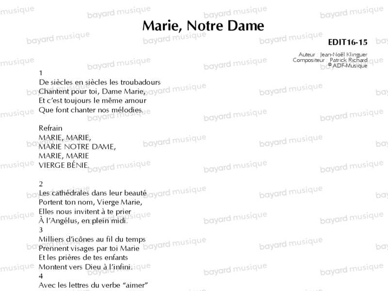 14 chants à Marie écrits par Jean-Noël Klinguer et mis en musique par Patrick Richard