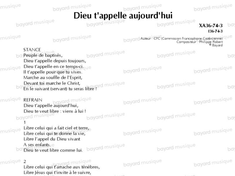 Interprété par Le Jeune Chœur Liturgique, direction Philippe Robert et Fabienne Martet.