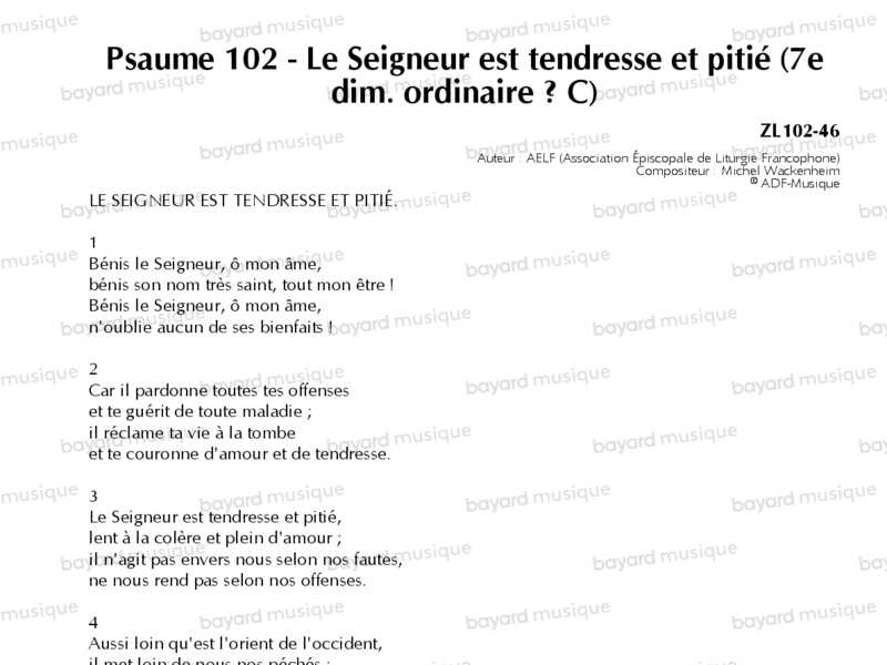 18. Psaume 102 - Le Seigneur est tendresse et pitié (7e dim. ordinaire – C)