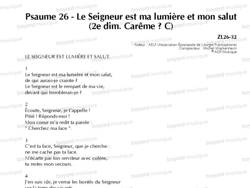 22. Psaume 26 - Le Seigneur est ma lumière et mon salut (2e dim. Carême – C)
