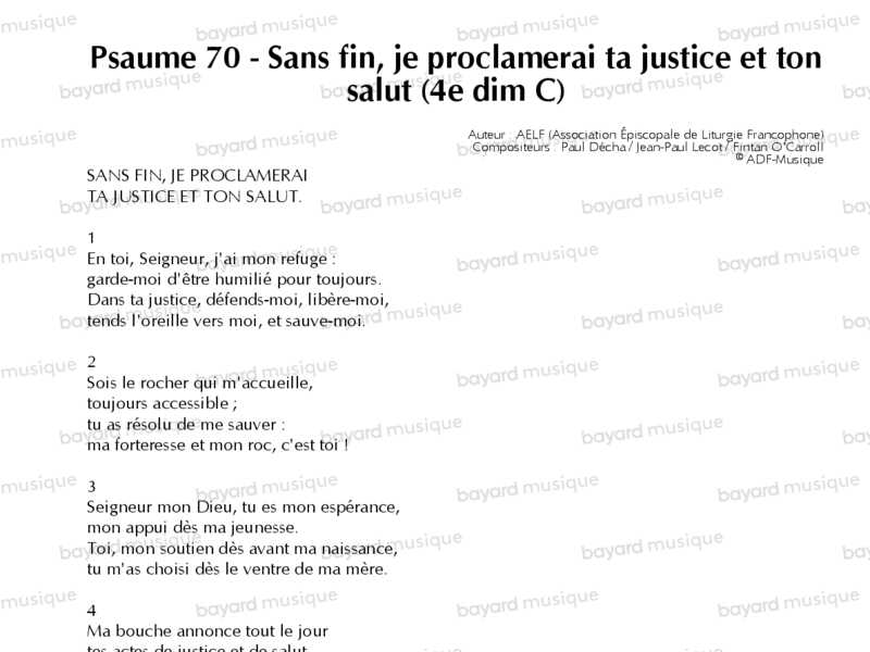 15. Psaume 70 - Sans fin, je proclamerai ta justice et ton salut (4e dim C)