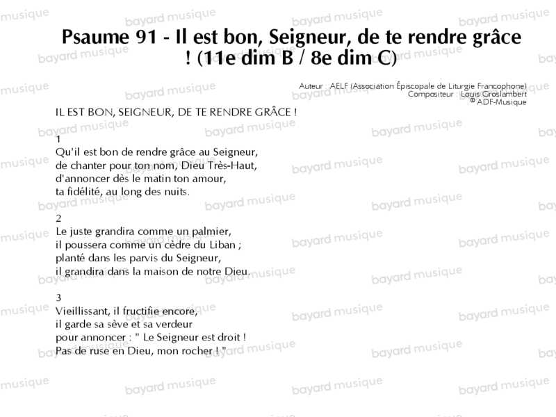 Psaume 91 - Il est bon, Seigneur, de te rendre grâce ! (11e dim B / 8e dim C)