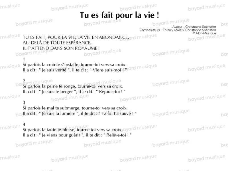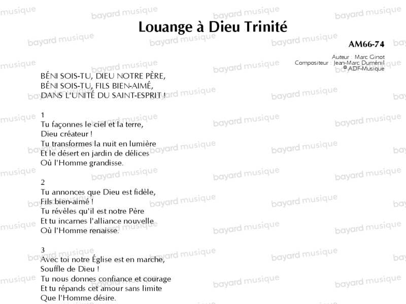 Interprété par sœur Agathe et le chœur des élèves de l'école Saint-Michel de Nantes.