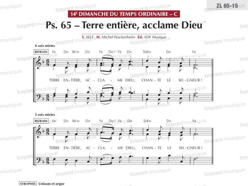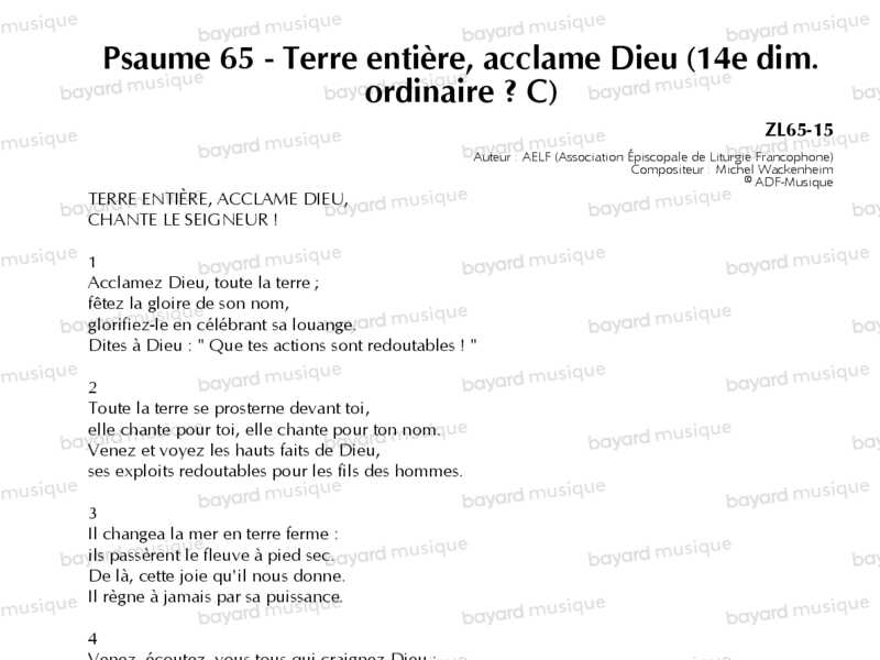 22. Psaume 65 - Terre entière, acclame Dieu (14e dim. ordinaire – C)