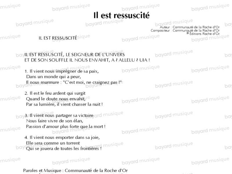 Interprété par le chœur de la communauté de la Roche d'Or.