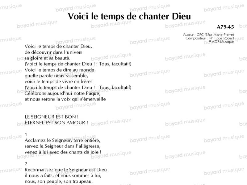 Interprété par Le Jeune Chœur Liturgique, direction Fabienne Martet et Philippe Robert.