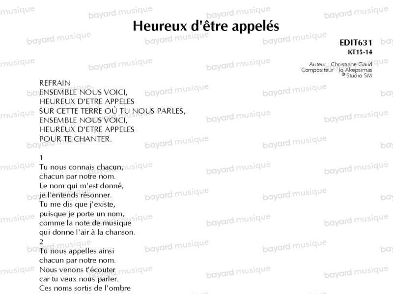 Interprété par Le jeune Chœur Liturgique, direction Philippe Robert et Fabienne Martet.