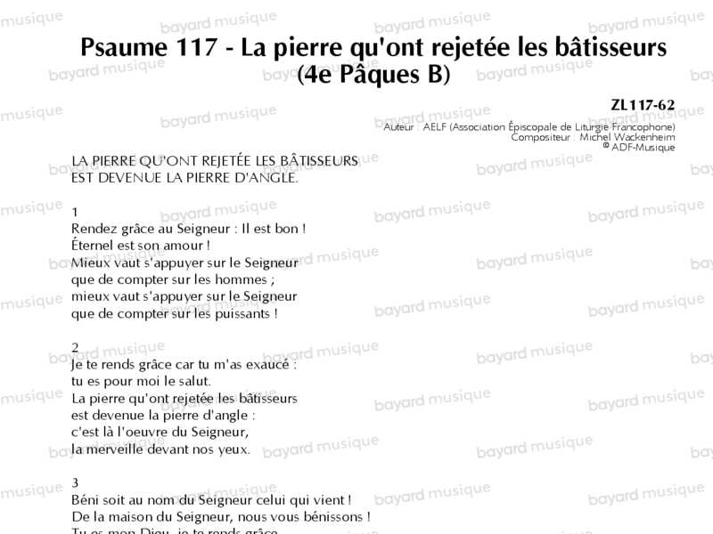 Psaume 117 - Rendez grâce au Seigneur il est bon (2e dimanche de Pâques, années ABC)