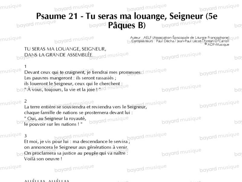 22. Psaume 21 - Tu seras ma louange, Seigneur (5e Pâques B)
