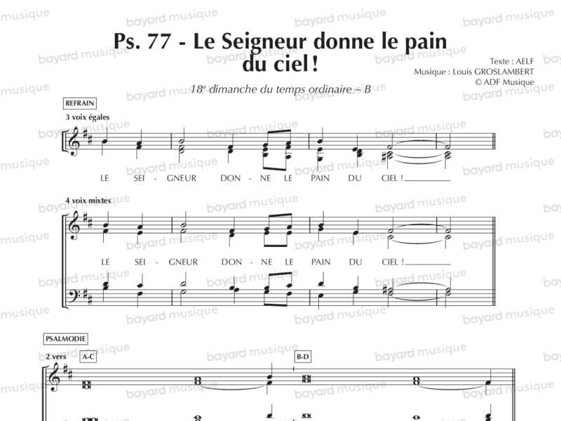 Comprend la partition pour le 19e, le 20e et le 21e dim. du TO B et pour le 4e dim. de Carême C