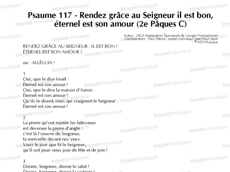 Psaume 117 - Rendez grâce au Seigneur il est bon, éternel est son amour (2e Pâques C)